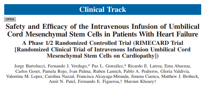 结果表明心力衰竭和射血分数降低的患者静脉输注脐带间充质干细胞是安全的,且可观察到接受脐带间充质干细胞治疗心力衰竭患者在左心室功能、功能状态和生活质量的改善。