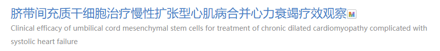 临床试验三:2017年一篇研究中选择2013年12月至2014年12月河南省人民医院收治的59例扩张型心肌病合并收缩性心力衰竭患者,将患者分为治疗组(30例)和对照组(29例)。治疗组患者在药物治疗基础上经冠状动脉注入脐带间充质干细胞;对照组患者在药物治疗基础上经冠状动脉注入等量生理盐水。