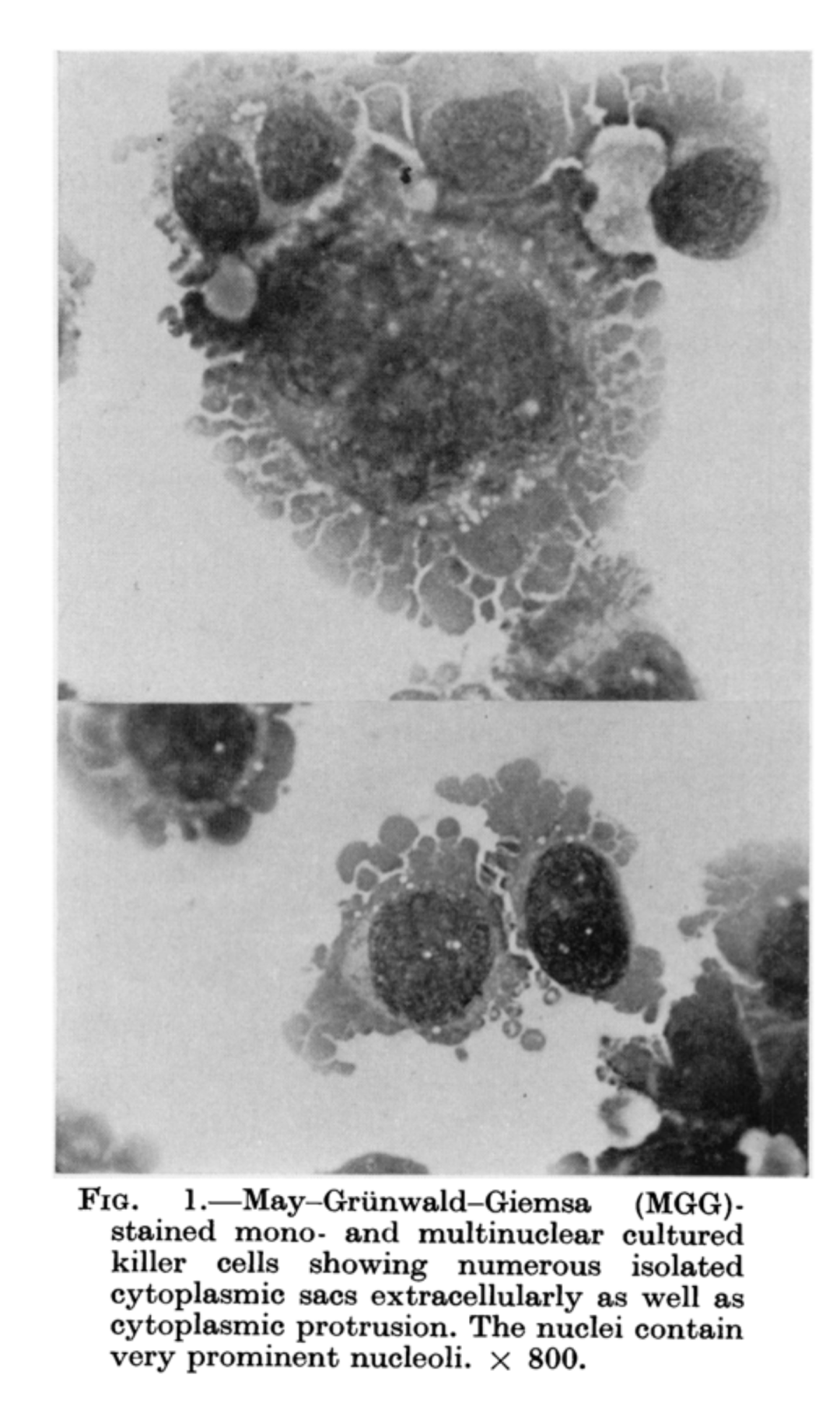 NK细胞发现于20世纪70年代,1975年前后,美国国立卫生研究院国立癌症研究所的 Herberman 教授和瑞典医学大学卡罗林斯卡研究所 Kiessling 教授,分别发表了相关论文,证实了NK细胞的存在。