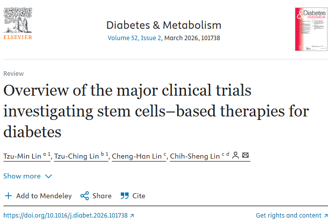 2026年3月1日,《Diabetes & Metabolism》发表题为“干细胞治疗糖尿病的主要临床试验概述”的研究综述[1]。文章指出,基于干细胞的疗法正引领糖尿病治疗从症状控制迈向病因干预,其核心目标在于恢复胰岛素分泌细胞的功能。干细胞疗法重塑糖尿病治疗格局已实现从供体胰岛移植(如埃德蒙顿方案)向人多能干细胞来源的β细胞替代疗法的关键跨越。