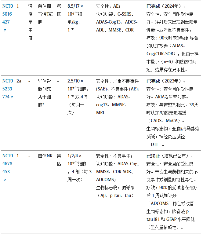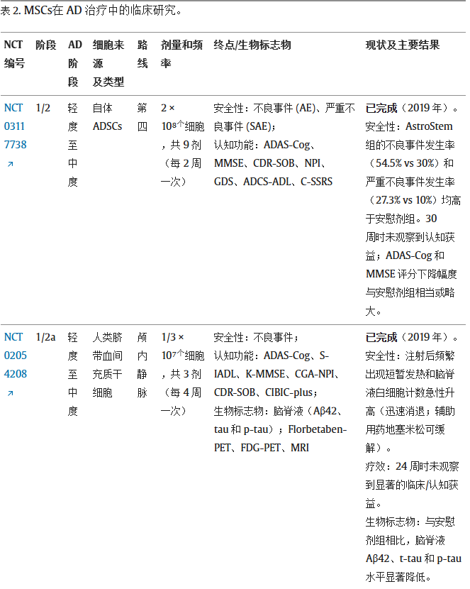 疗效、安全性挑战与数据透明度:临床前证据虽表明MSCs能调节神经炎症并减轻病理负担,但人体试验显示生物标志物的改善并未持续转化为显著的认知获益。