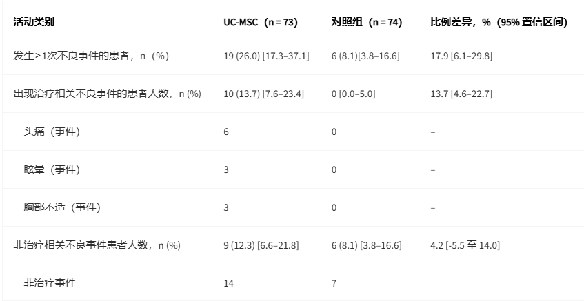 - 与对照组相比,UC-MSC治疗未出现严重安全性问题