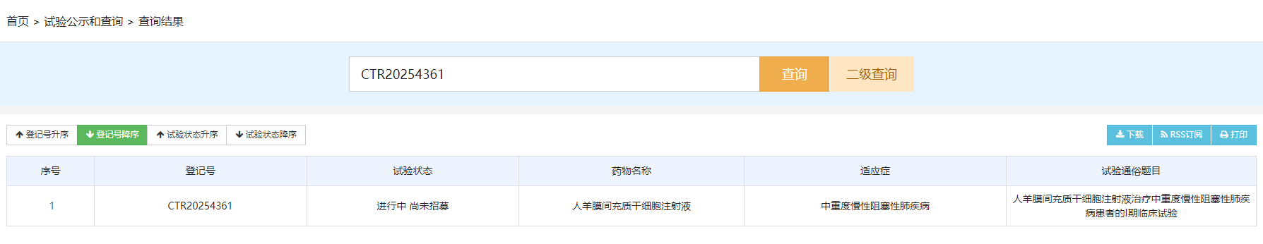 11月5日,药物临床试验登记与信息公示平台数据显示,源品细胞生物科技集团有限公司的一项评价人羊膜间充质干细胞注射液治疗中重度慢性阻塞性肺疾病患者的安全性、耐受性及有效性的I期临床试验已启动。临床试验登记号为CTR20254361,首次公示信息日期为2025年11月5日。[12]