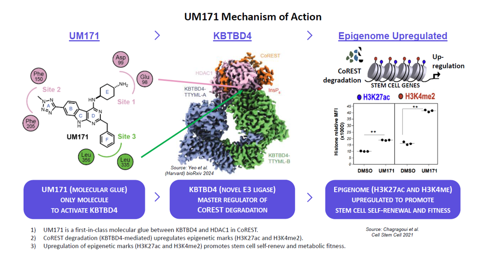 作为一款一次性、个性化冷冻保存造血干细胞移植产品,Zemcelpro®由同一脐带血单位衍生出两种关键组分:经 UM171 扩增的 CD34+ 细胞(dorocubicel)与未扩增的 CD34- 细胞。