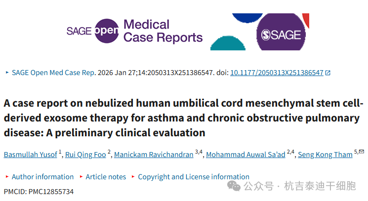 监管框架将间充质干细胞的用途限制在有科学证据支持的适应症范围内。2026年案例:马来西亚一项针对哮喘、COPD患者的雾化吸入外泌体治疗研究显示,三名患者在GMP级生产条件下接受治疗,肺功能指标(FEV1/FVC)显著改善,且未出现任何严重不良事件——这正是研究与临床界限清晰的范例。