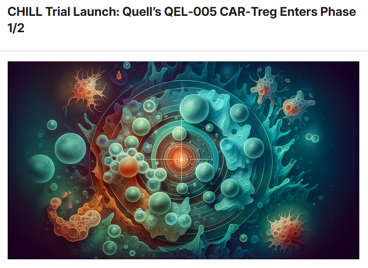 近年来,Treg疗法已从概念验证阶段进入临床试验的实质性探索阶段。2026年3月,Quell Therapeutics公司已获得英国MHRA批准,启动了名为CHILL的I/II期临床研究,评估其基于CD19靶向的CAR-Treg产品QEL-005在难治性RA和系统性硬化症中的安全性与初步疗效。该研究计划在英国、德国和西班牙纳入最多16名成年参与者,预计2027年第一季度发布早期临床数据[3]。