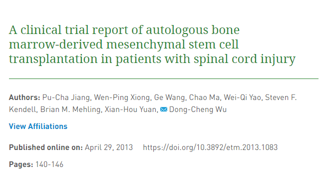 干细胞移植治疗脊髓损伤的临床案例