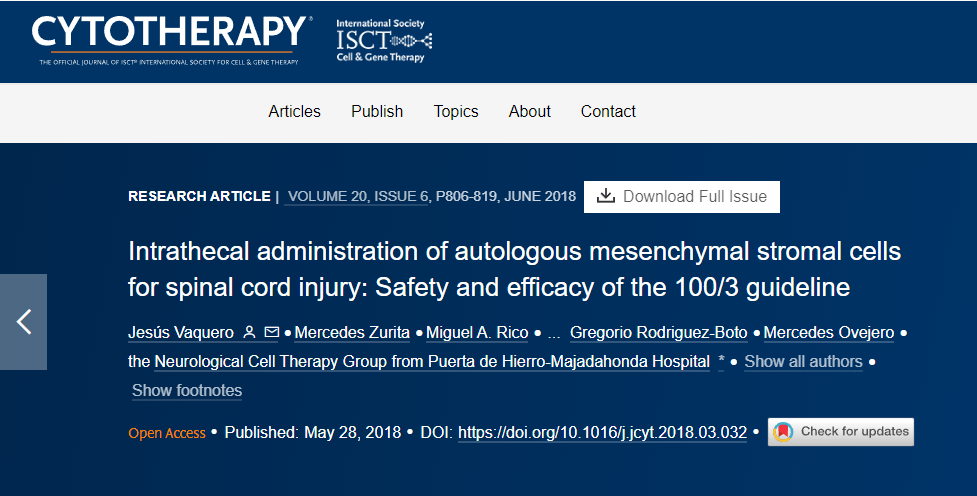 一项研究报告称,自体间充质干细胞移植后运动和感觉功能显着改善