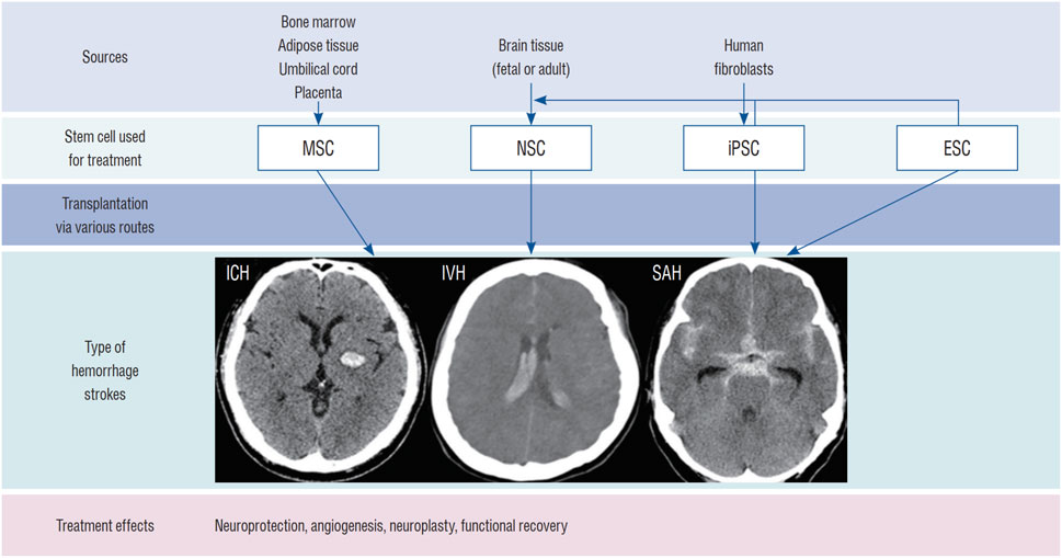 综述结果表明,神经干细胞治疗ICH的机制涵盖替代神经元、免疫调节与促进血管生成等多重途径;其来源可分为内源性激活与外源性移植,后者包括原代培养、多能干细胞分化及体细胞重编程;输送途径主要有立体定向脑内注射、经脑脊液移植及血管内注射,各有优劣。