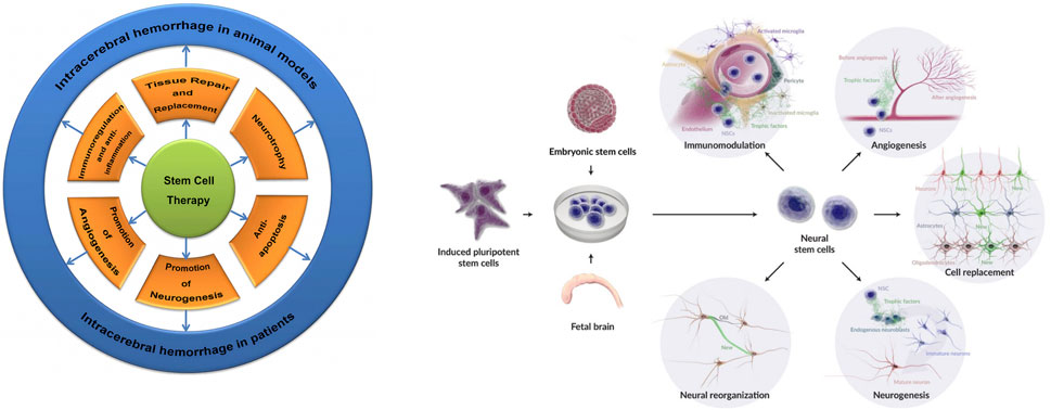 综上所述,神经干细胞移植通过抑制炎症、分化为功能性神经元以及促进神经保护与神经发生,展现出显著的治疗潜力,使其成为治疗脑出血的一种有前景的方法。本文旨在系统综述目前关于神经干细胞在脑出血治疗中的研究进展,重点关注其来源、给药途径、作用机制及临床转化意义。