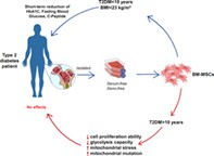 - 2型糖尿病的持续时间通过降低增殖率、损害糖酵解过程、降低线粒体功能和改变线粒体变体直接改变了骨髓间充质干细胞的表型。