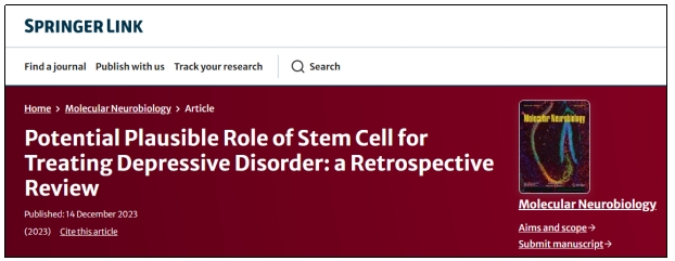 近年来,干细胞疗法在阿尔茨海默病、帕金森病等神经退行性疾病治疗中展现出良好效果,为抑郁症的干预提供了新思路。我国研究人员系统综述了干细胞在抑郁症病理机制中的作用机制及其临床应用潜力,相关研究成果已在国际期刊《Molecular Neurobiology》上发表,为推动干细胞治疗抑郁症的基础与临床研究提供了重要参考。[1]