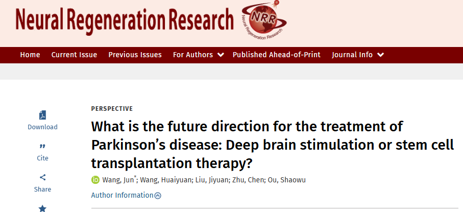[1]:王军* ;王怀远;刘济源;朱,陈;欧绍武. 帕金森病治疗的未来方向是什么:深部脑刺激疗法还是干细胞移植疗法?. 神经再生研究(Neural Regeneration Research):10.4103/NRR.NRR-D-25-01747,2026年2月5日。| DOI: 10.4103/NRR.NRR-D-25-01747