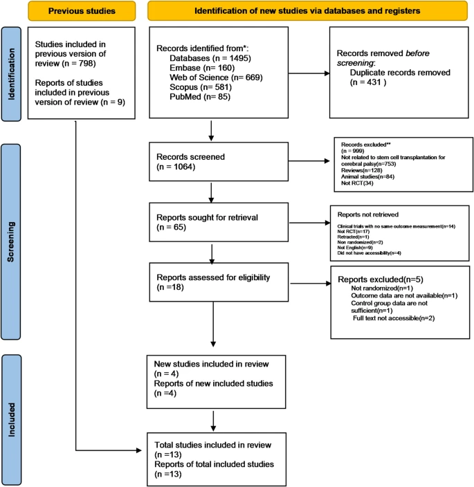 近期,国际知名干细胞杂志《Stem Cell Res Ther》发表了一项题为“评估干细胞/间质细胞移植对确诊为脑瘫儿童的安全性和有效性:随机对照试验的系统回顾和荟萃分析”的研究。该研究旨在系统评估干细胞或基质细胞疗法对脑瘫儿童的疗效和安全性[1]。