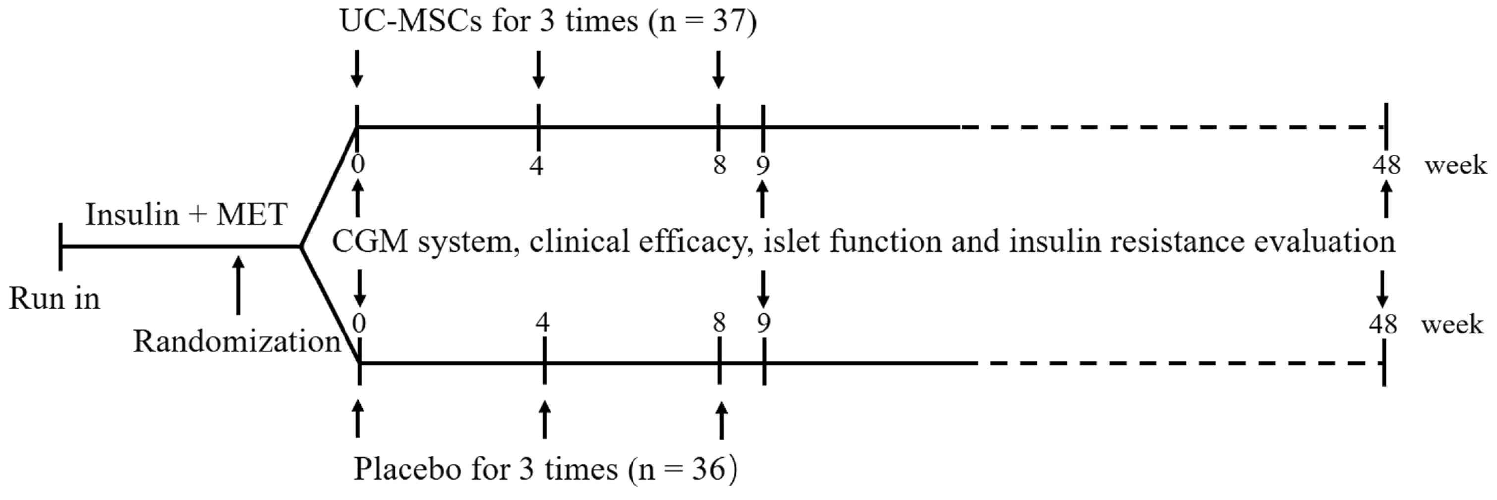 MET,二甲双胍;UC-MSCs,脐带间充质干细胞;CGM,连续血糖监测仪。