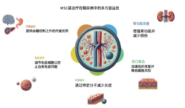 调节免疫,减轻炎症:2型糖尿病常伴随慢性低度炎症,UC-MSC可通过调控免疫细胞、分泌抗炎因子,改善胰岛局部微环境,为胰岛β细胞修复创造条件。