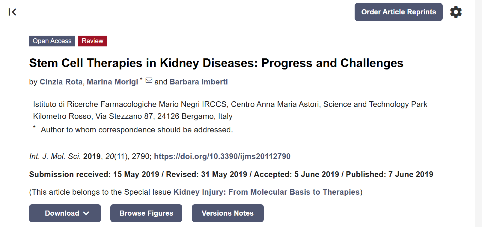 [1]Rota, C.; Morigi, M.; Imberti, B. Stem Cell Therapies in Kidney Diseases: Progress and Challenges. Int. J. Mol. Sci. 2019, 20, 2790. https://doi.org/10.3390/ijms20112790