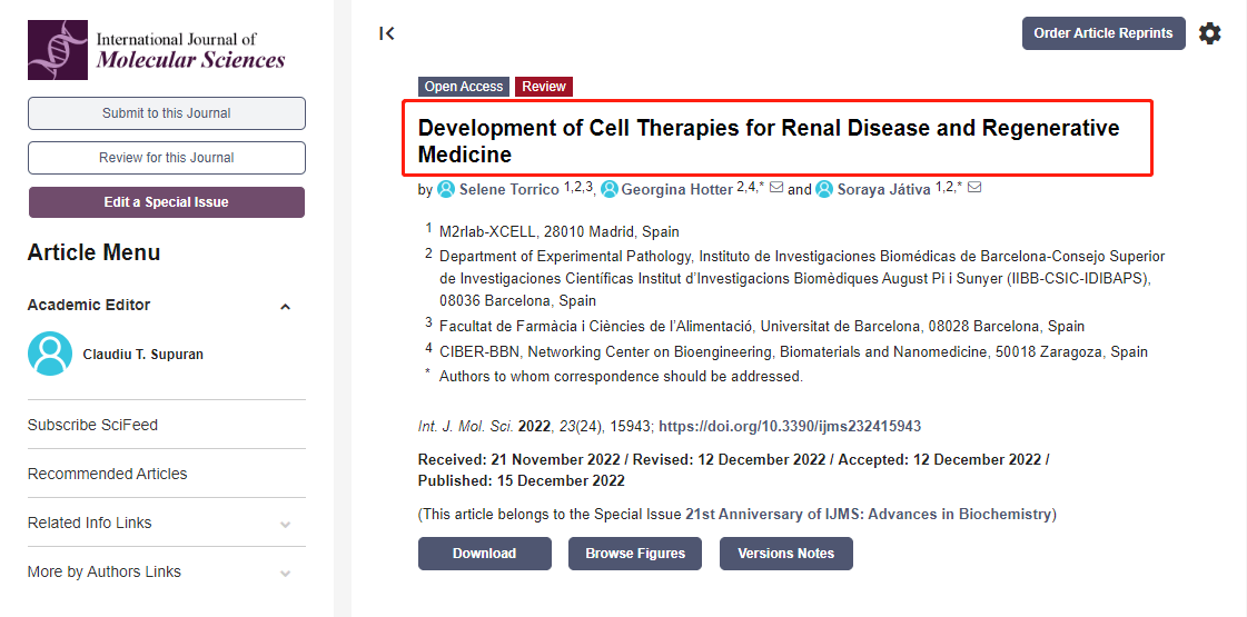 参考资料:Torrico S, Hotter G, Játiva S. Development of Cell Therapies for Renal Disease and Regenerative Medicine. Int J Mol Sci. 2022 Dec 15;23(24):15943. doi: 10.3390/ijms232415943. PMID: 36555585; PMCID: PMC9783572.