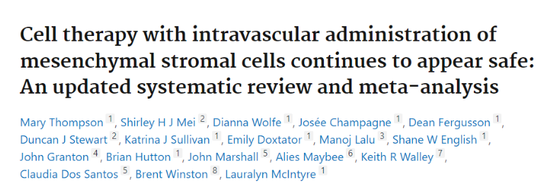 其中作者曾经在2012年的时候总结在此日期之前的间充质干细胞的临床不良反应,一共包括了8个随机临床的试验,369例病人,确定了发热是唯一与MSC治疗相关的不良事件。