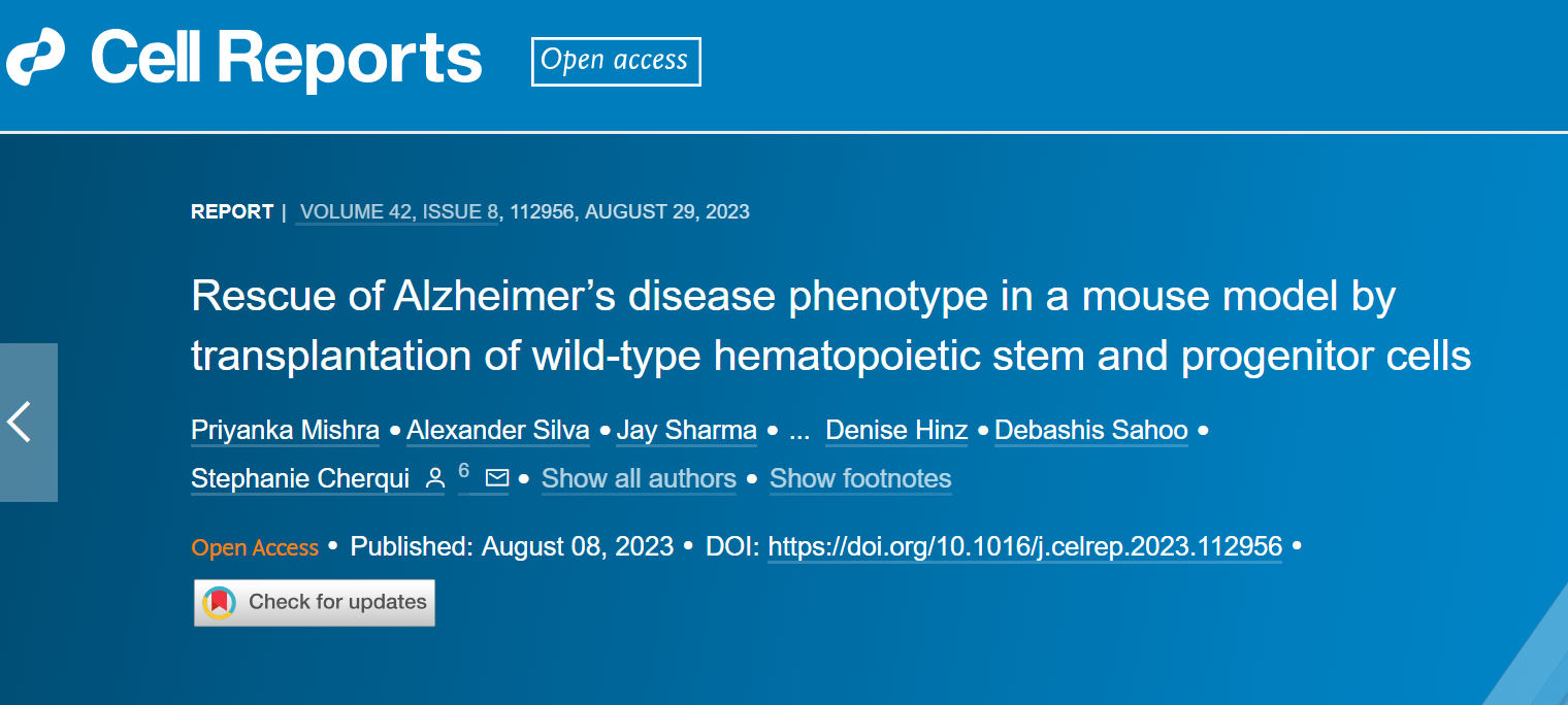 在近日发表在《细胞报告》(Cell Reports)上的这项研究中,研究人员证明,移植造血干细胞和祖细胞可以有效缓解阿尔茨海默病小鼠模型的多种症状和体征。与其他阿尔茨海默病小鼠相比,接受健康造血干细胞的小鼠表现出记忆和认知功能保留,神经炎症减少,β-淀粉样蛋白积聚显著减少。