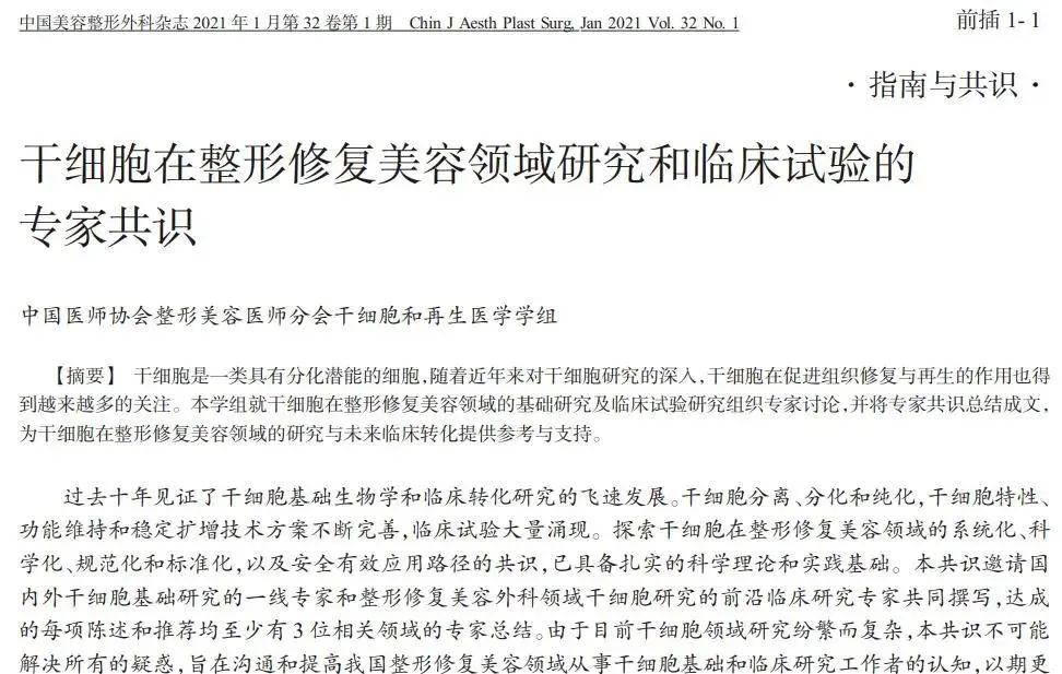 ▉ 06 干细胞在整形修复美容领域研究和临床试验的专家共识
