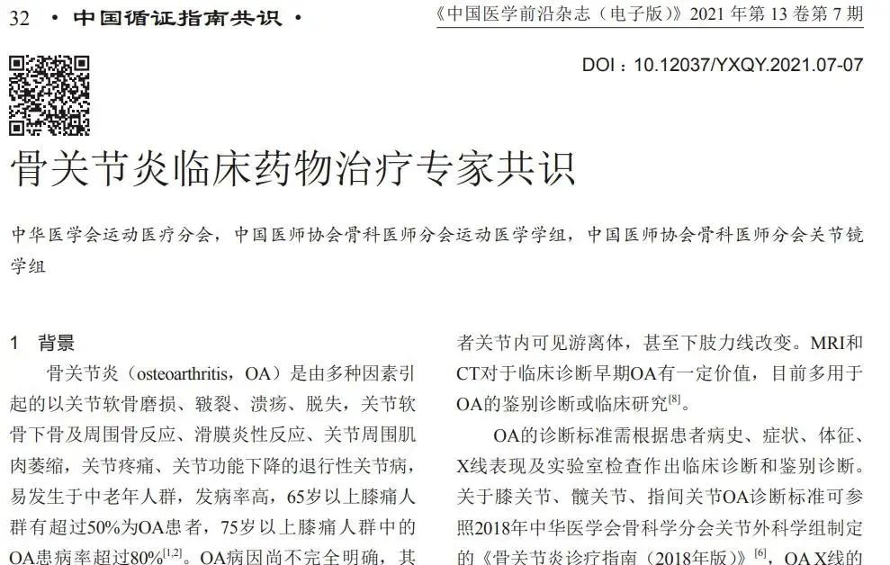 ▉ 07 骨关节炎临床药物治疗专家共识