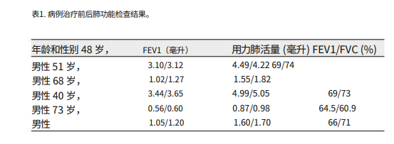 短期疗效:肺功能和影像学检查改善(1-12个月)