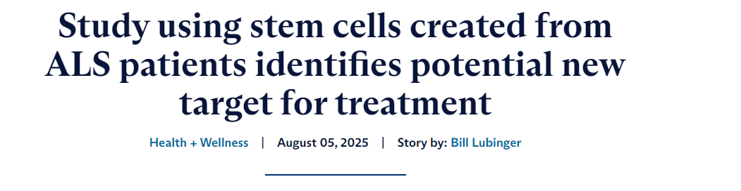 8月5日,凯斯西储大学的研究团队在《EMBO分子医学》发表的一项新研究中,利用来自ALS患者的诱导多能干细胞(iPSC)培养出运动神经元,并揭示了一种潜在的新治疗方向。研究聚焦一种由VAPB基因突变引起的罕见遗传性ALS类型。[8]