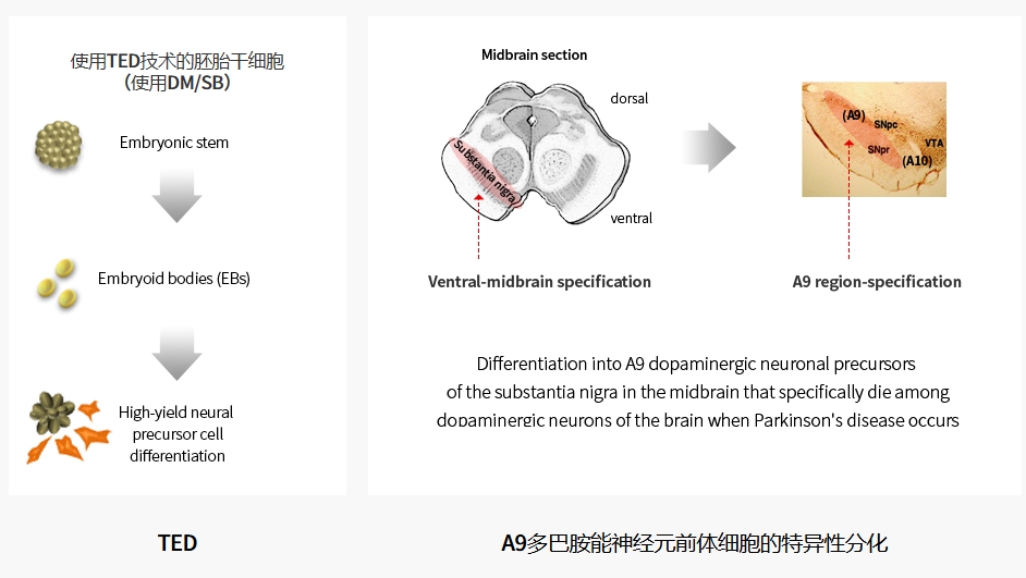 A9-DPC (TED-A9):源自hESC的腹侧中脑特异性多巴胺能祖细胞,用于治疗帕金森病(1/2a期)