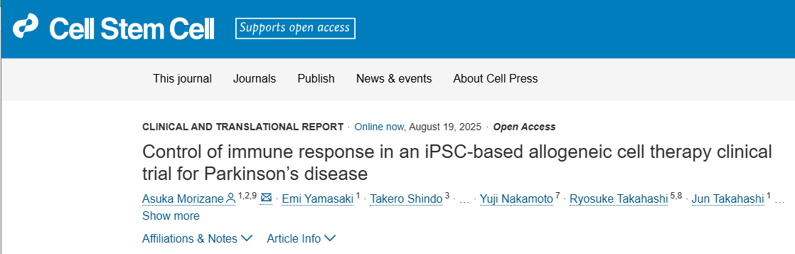 近日,日本京都大学iPS细胞研究与应用中心临床应用系开展了首个针对帕金森病、使用同种异体iPSCs的人体临床试验(jRCT编号:jRCT2090220384)。该项研究发表在《Cell Stem Cell》上[1]。