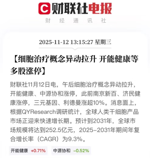 11月12日,A股市场见证了一场精彩的资本狂欢。干细胞概念股集体爆发:[3]