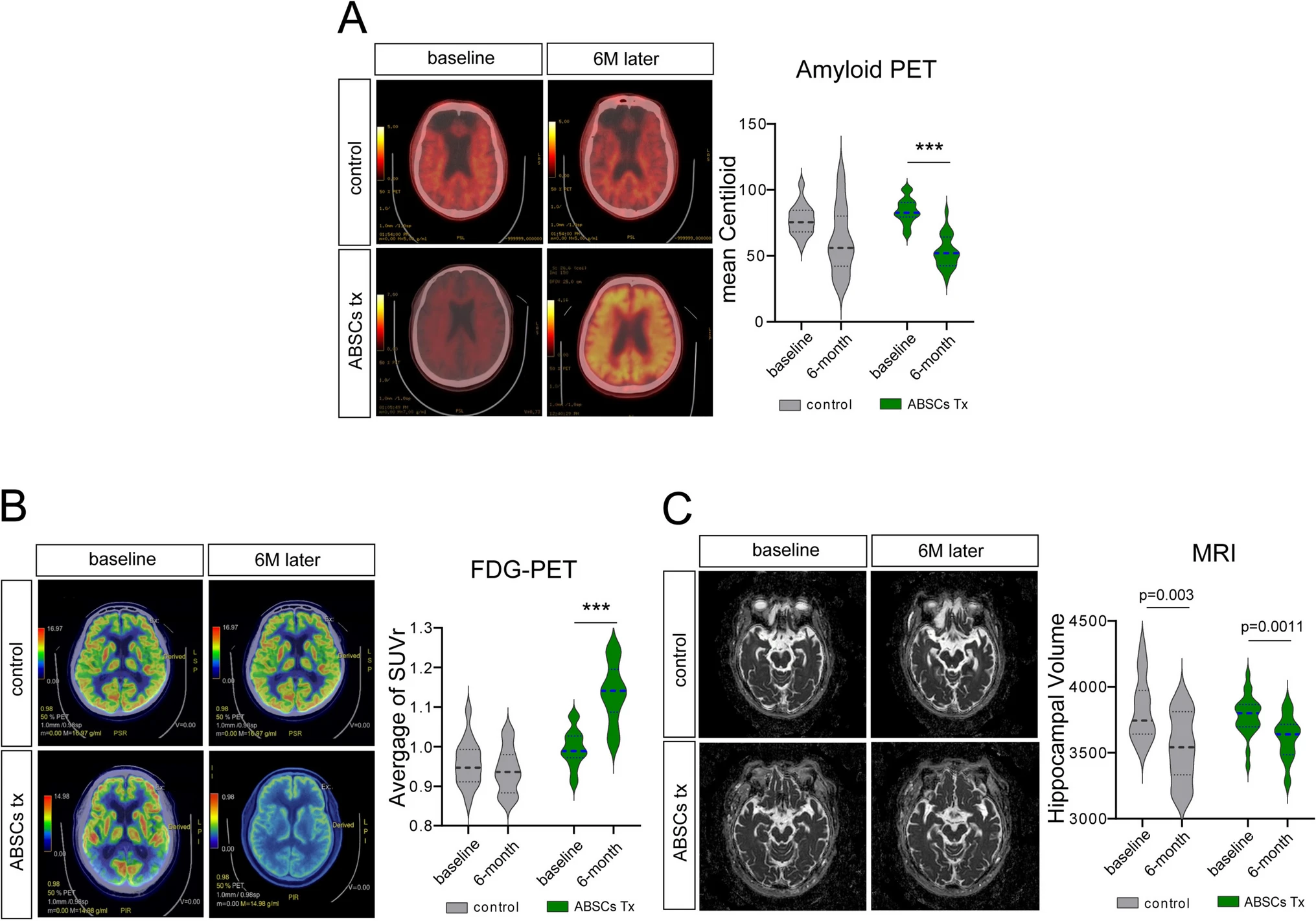 这项临床试验证实了将自体干细胞(ABSC)与生长因子联合用于治疗中重度阿尔茨海默病(AD)患者的疗效。
