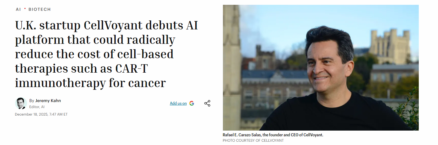 [5]https://fortune.com/2025/12/18/cellvoyant-ai-platform-fateview-reduce-cost-of-cell-based-therapies-car-t/?utm_source=chatgpt.com