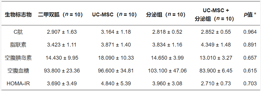 为了进一步验证UC-MSCs及其分泌组对PCOS多项指标的改善作用,知名期刊 《临床医学杂志》 发表了一篇题为《脐带间充质干细胞及其分泌组对代谢组学特征(C肽、脂联素、空腹胰岛素和空腹血糖)的影响:一项随机对照试验》的研究论文[1]。该研究为PCOS的治疗开辟了新的探索方向。