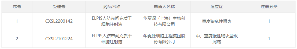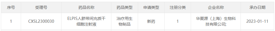 今日,据国家药品监督管理局药品审评中心(CDE)官网最新公示,华夏源(上海)生物科技有限公司(以下简称“华夏源”)“ELPIS人脐带间充质干细胞注射液”新适应症临床试验申请(IND)已获得受理(受理号:CXSL2300030)。申报适应症为:中、重度宫腔粘连。