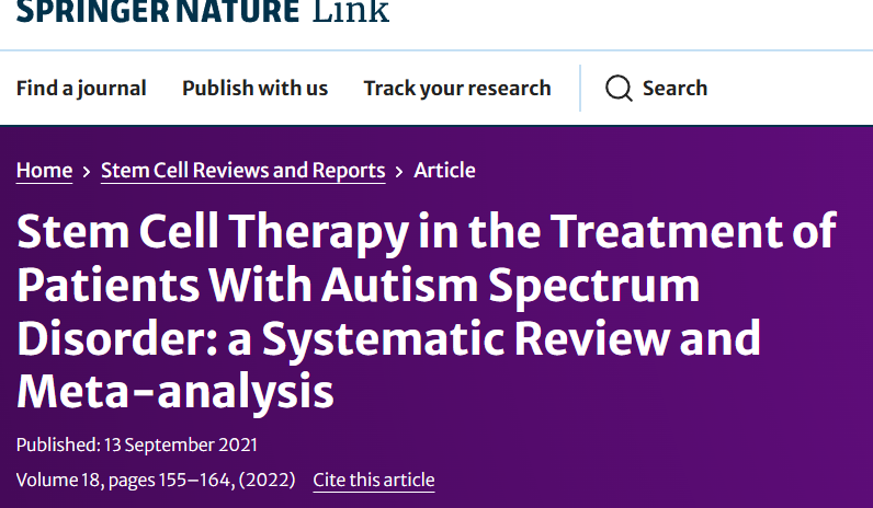 参考资料:Villarreal-Martínez, L., González-Martínez, G., Sáenz-Flores, M. et al. Stem Cell Therapy in the Treatment of Patients With Autism Spectrum Disorder: a Systematic Review and Meta-analysis. Stem Cell Rev and Rep 18, 155–164 (2022). https://doi.org/10.1007/s12015-021-10257-0