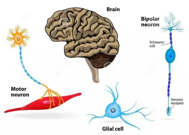 越来越多的证据表明,神经系统的这些其他细胞——“神经胶质细胞”——在健康和疾病中都发挥着关键作用。在中枢神经系统中,胶质细胞的主要类别包括星形胶质细胞、少突胶质细胞和小胶质细胞。这些细胞各自具有许多不同的功能,目前只有其中一些功能得到了很好的了解;例如,小胶质细胞充当中枢神经系统的免疫细胞,而少突胶质细胞负责产生包裹神经元轴突的髓鞘,从而允许快速传导电信号。在PNS中,雪旺细胞扮演着少突胶质细胞的角色。胶质细胞对神经元损伤反应迅速,但它们的反应可能并不总是令人满意的。