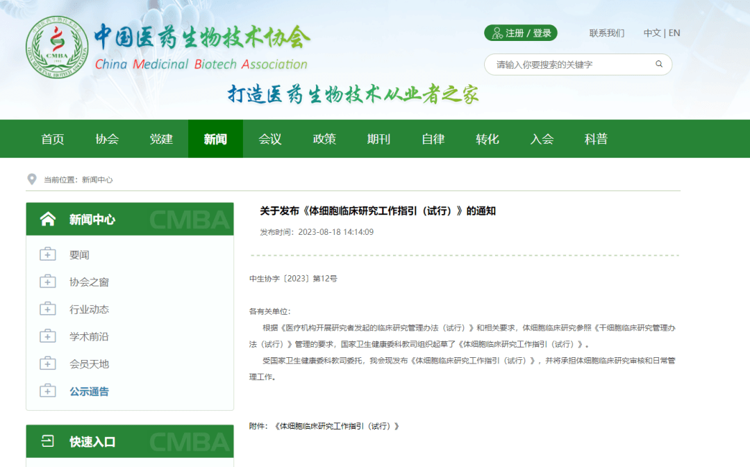Part.3/中国医药生物技术协会发布,《体细胞临床研究工作指引(试行)》