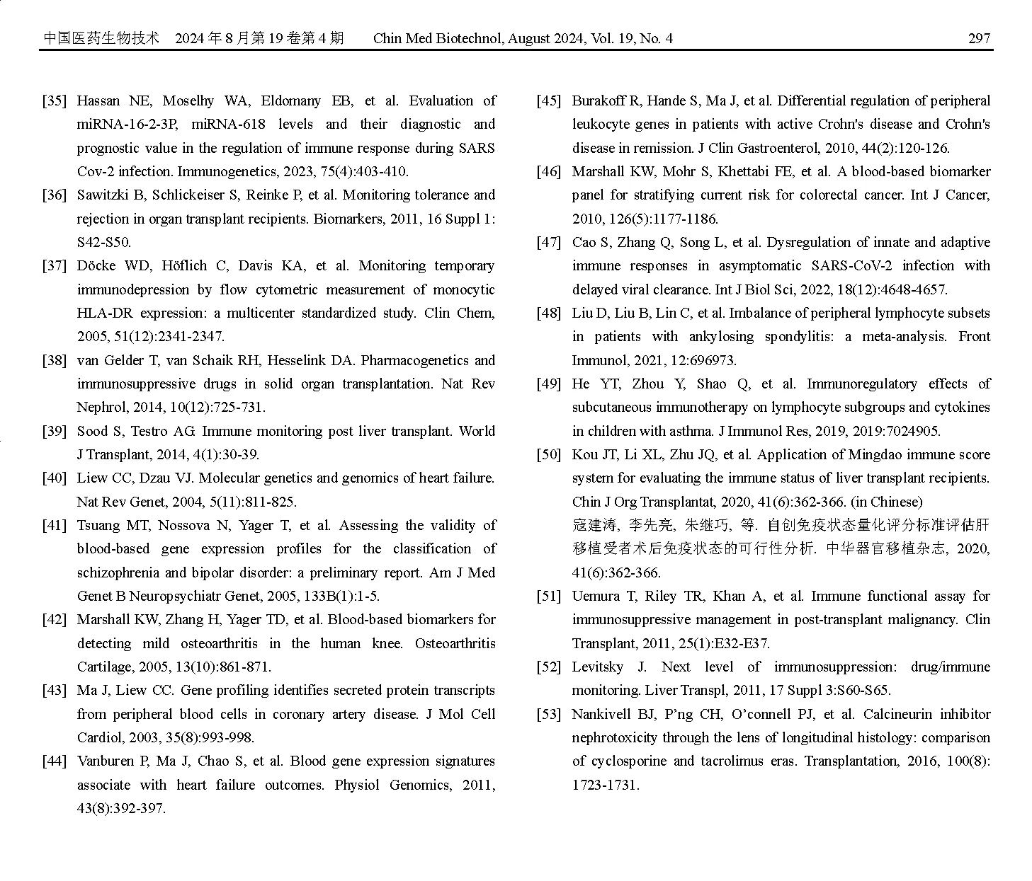 GB/T 7714-2015格式引文:中国医疗保健国际交流促进会肝脏移植学分会, 中国医疗保健国际交流促进会肾脏移植学分会, 中国医药生物技术协会生物诊断技术分会. 免疫细胞功能状态量化检测评估与临床应用专家共识. 中国医药生物技术, 2024, 19(4):289-297。