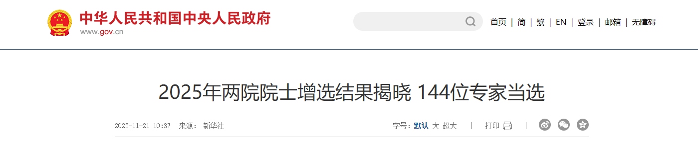 2025年11月21日,中国科学院与中国工程院正式公布了新一届院士增选结果,共144位杰出专家当选。其中,中国科学院新增院士73位,中国工程院新增院士71位。