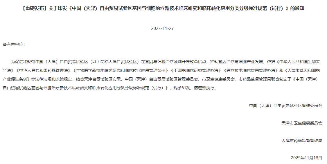 2025年11月26日,厦门市人大常委会办公厅正式发布《厦门经济特区细胞产业促进规定(草案)》,向社会公开征求意见至12月27日。[1]